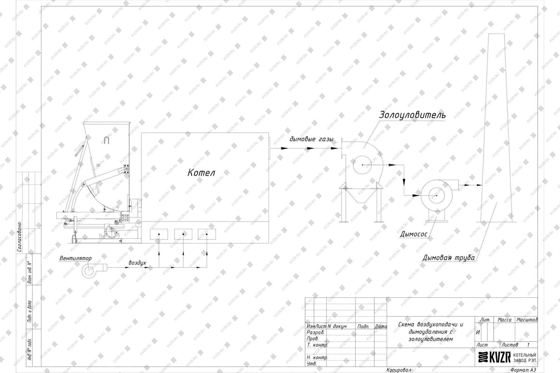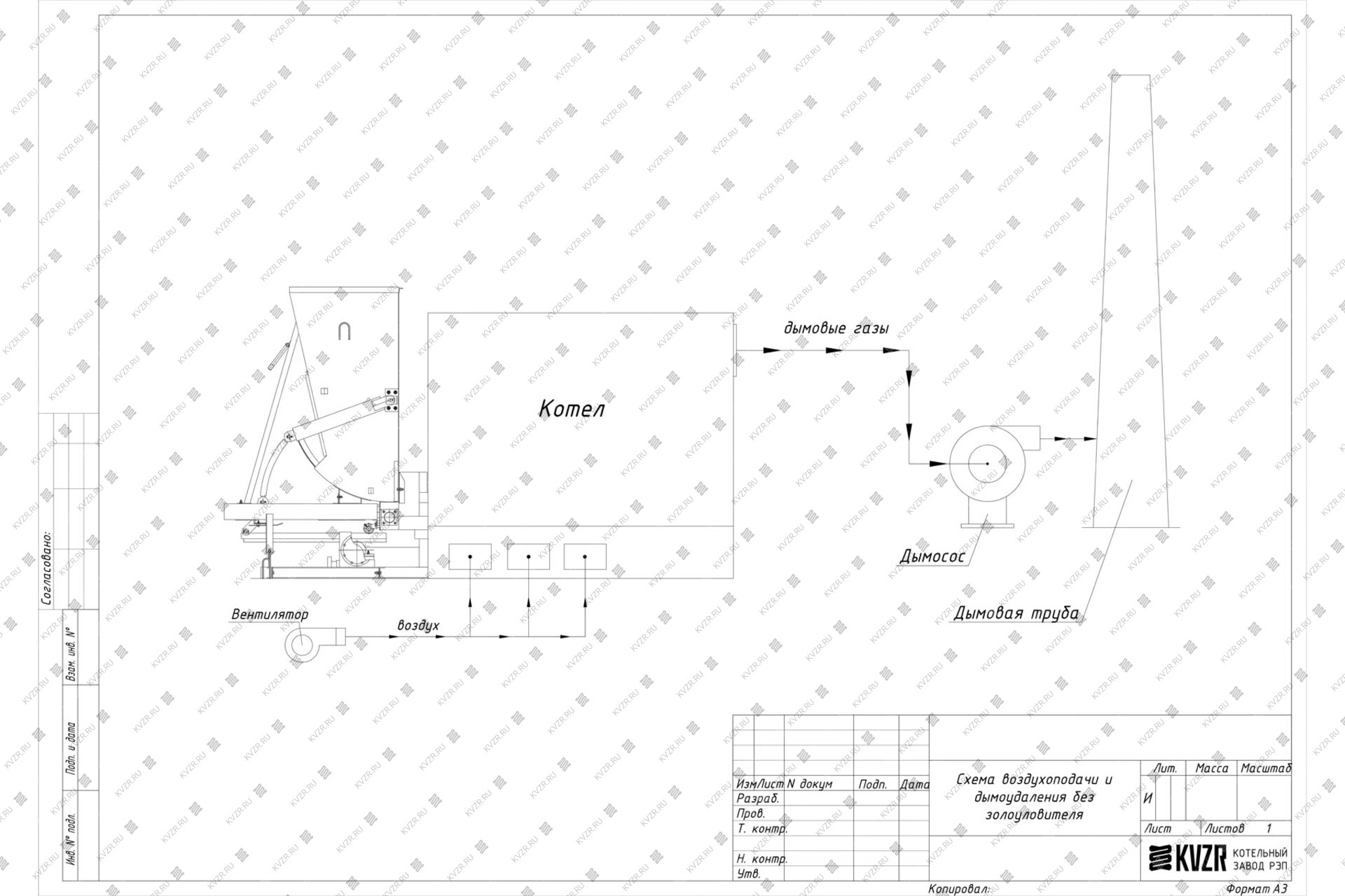В случае, если степень очистки дымовых газов высокая не требуется, можно установить котел КВм-1.0 с ТШПМ без золоуловителя. Схема подключения при этом следующая - дымовые газы выходят из котла в газоходы котельной, затем в дымосос и далее снова по газоходам в дымовую трубу. В зависимости от компоновки котельной дымосос может устанавливаться как в котельной, так и на улице. Наш завод производит газоходы и переходники к ним. Получив схему вашей котельной мы можем изготовить для вас комплект газоходов, переходников нужных размеров и сечений. На месте такие детали собираются как конструктор. Обращаем ваше внимание, что газоходы требуют изоляции, для защиты персонала от ожогов, так как уходящие газы имеют высокую температуру, а на улице газоходы требуют изоляции для избежания образования конденсата.
