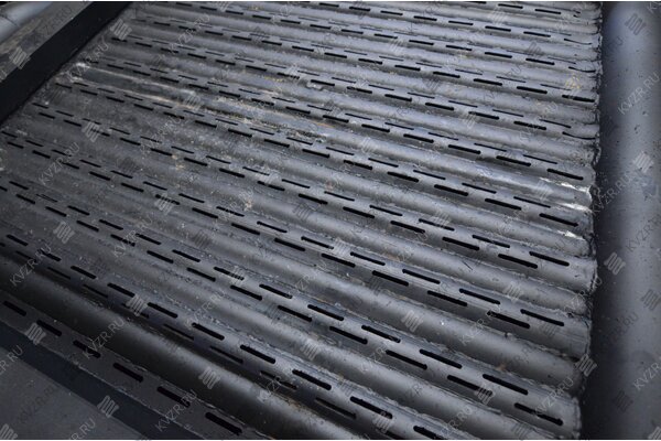 Модель с топкой ОУР. Топка ОУР выполняется из труб по которым движет теплоноситель и межтрубных металлических полос с отверстиями. Теплоноситель - вода, остужает конструкцию изнутри, предотвращая перегрев и програр колосников. Отверстия покрывают всю поверхность колосников для равномерной подачи воздуха в топливный слой. Небольшой размер отверстий не дает провалиться недогоревшему топливу в зольник. Топливо остается в топке до полного выгорания.